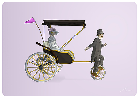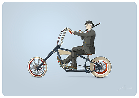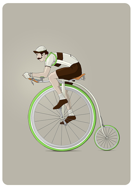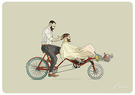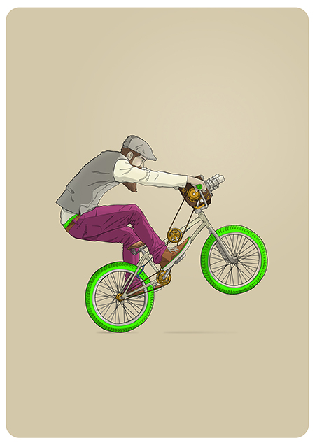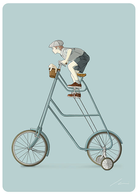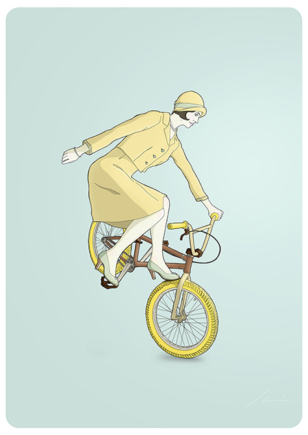 Actualmente compagina su trabajo como Director de Arte en la Agencia Welcome (@WelcomeAgencia) con sus proyectos personales de ilustración. Entre ellos, nos ha llamado la atención la serie “Bikes” a la que pertenecen las imágenes del post y donde Ibai Eizaguirre Sardon descontextualiza el uso de la bicicleta mostrando situaciones actuales a través de personajes de otra época.