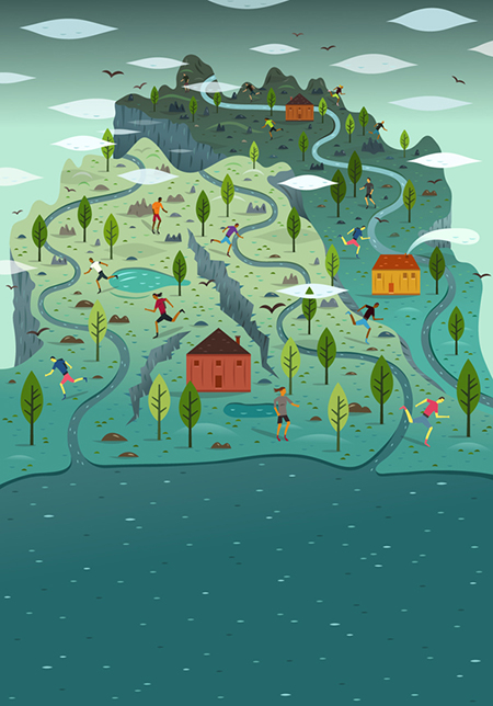 Nacido en 1984 en Copenhage (Dinamarca) y residente en Londres (Reino Unido), Alex Mathers es un diseñador gráfico e ilustrador especializado en arte digital. Es conocido a nivel internacional por sus escenas y paisajes creados con vectores. Actualmente forma parte del equipo de diseño de Google+, y ha trabajado para clientes como Popular Mechanics Magazine, Saatchi & Saatchi, NY, Washington Post, Macworld, Penguin, Usborne, Huggies, Mars, Kraft, Google, Barclays, Wired Magazine, Smith & Foulkes, Singapore Business Times newspaper y United Nations Environmental Programme entre otros. Podéis ver más ilustraciones y diseños de Alex Mathers en su web personal y seguirle en Twitter en @MoonApe.