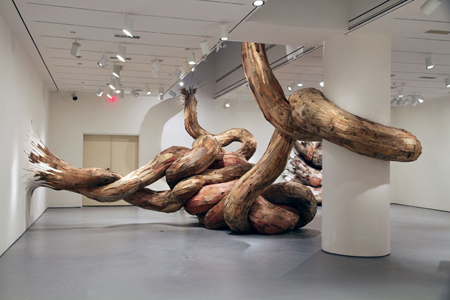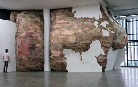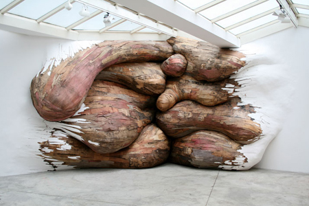 Las obras de Henrique Oliveira te invaden y al mismo tiempo te invitan con sus formas sinuosas a que las acaricies e incluso que las penetres, su aspecto orgánico insinúa fantasías de todo tipo, desde la sexuales hasta aquellas que convierten al espectador en un explorador de una gruta subterránea. Un mundo deformado a partir de nuestra realidad. Podéis ver más obras de Henrique Oliveira en su web personal.