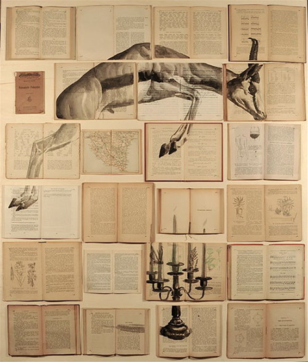 Nacida en 1975 en San Petersburgo (en tiempos de la antigua U.R.S.S) y residente en Roma (Italia), Ekaterina Panikanova es una artista graduada en Pintura en La Scuola dell’Arte del Museo dell’Hermitage. Conocida por sus obras de técnica mixta, crea collages mediante libros sobre los que pinta o realiza ilustraciones con tinta. Podéis ver más collages de Ekaterina Panikanova en su web personal.
