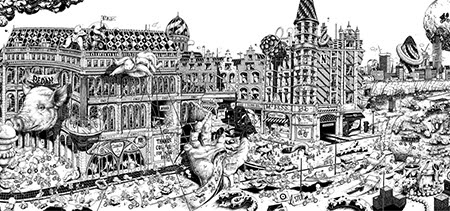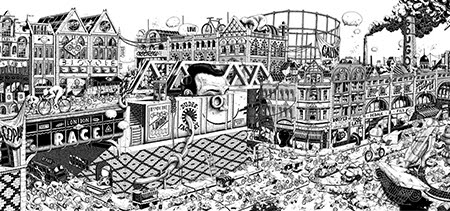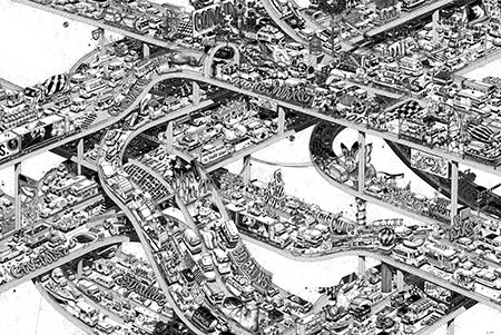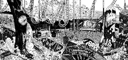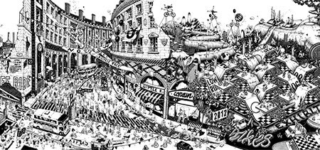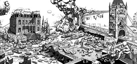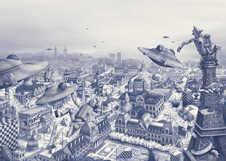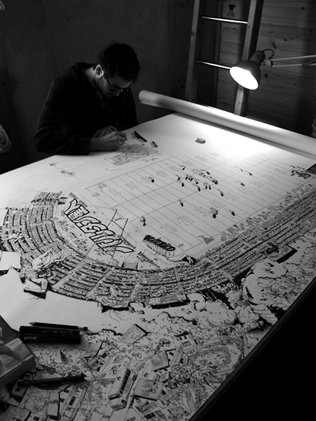 Residente en París (Francia), Ugo Gattoni es un ilustrador que estudió Diseño Gráfico en EPSAA (París) y, tras su graduación, decidió dedicarse principalmente al mundo del arte y la ilustración. Es conocido por sus obras de gran formato (10×1,2 metros en el caso de «Ultra Copains«) con dibujos cargados de detalles. Ha realizado proyectos para clientes como Caravan Palace, Commune de Paris, Condé Nast, Hermès, Motorola, Museum of London, New York Times, Nissan, Nobrow Press, Qhuit, Sandro, Savoir Faire & Cie y The Dudes Factory entre otros. Podéis ver más ilustraciones y dibujos de Ugo Gattoni en su web personal y seguirle en Twitter en @ugogattoni.